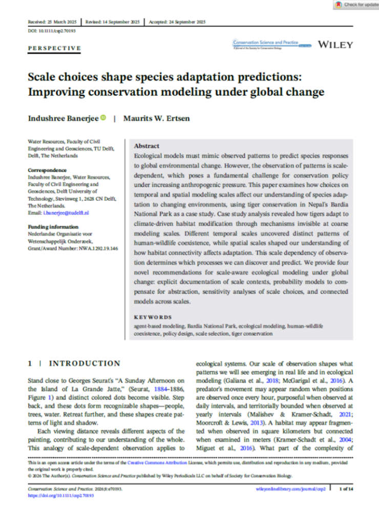 Banerjee, I., Ertsen, M., Scale choices shape species adaptation predictions: Improving conservation modeling under global change, Conservation Science and Practice 8(2), 2026, https://dx.doi.org/10.1111/csp2.70193