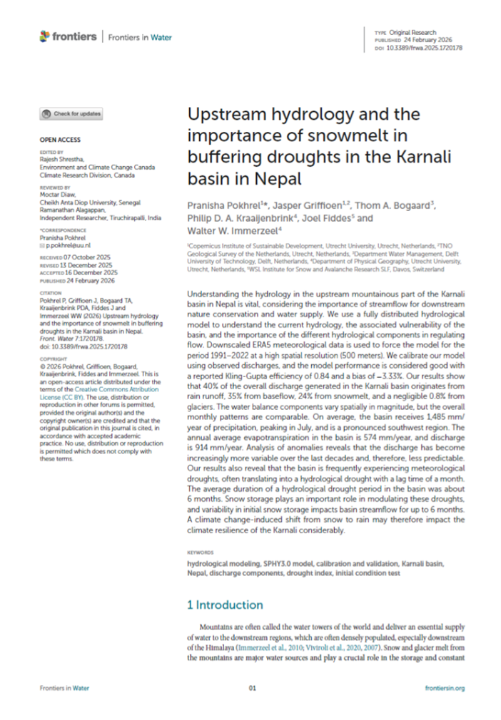 Pokhrel P, Griffioen J, Bogaard TA, Kraaijenbrink PDA, Fiddes J and Immerzeel WW (2026) Upstream hydrology and the importance of snowmelt in buffering droughts in the Karnali basin in Nepal. Front. Water 7:1720178. https://dx.doi.org/10.3389/frwa.2025.1720178